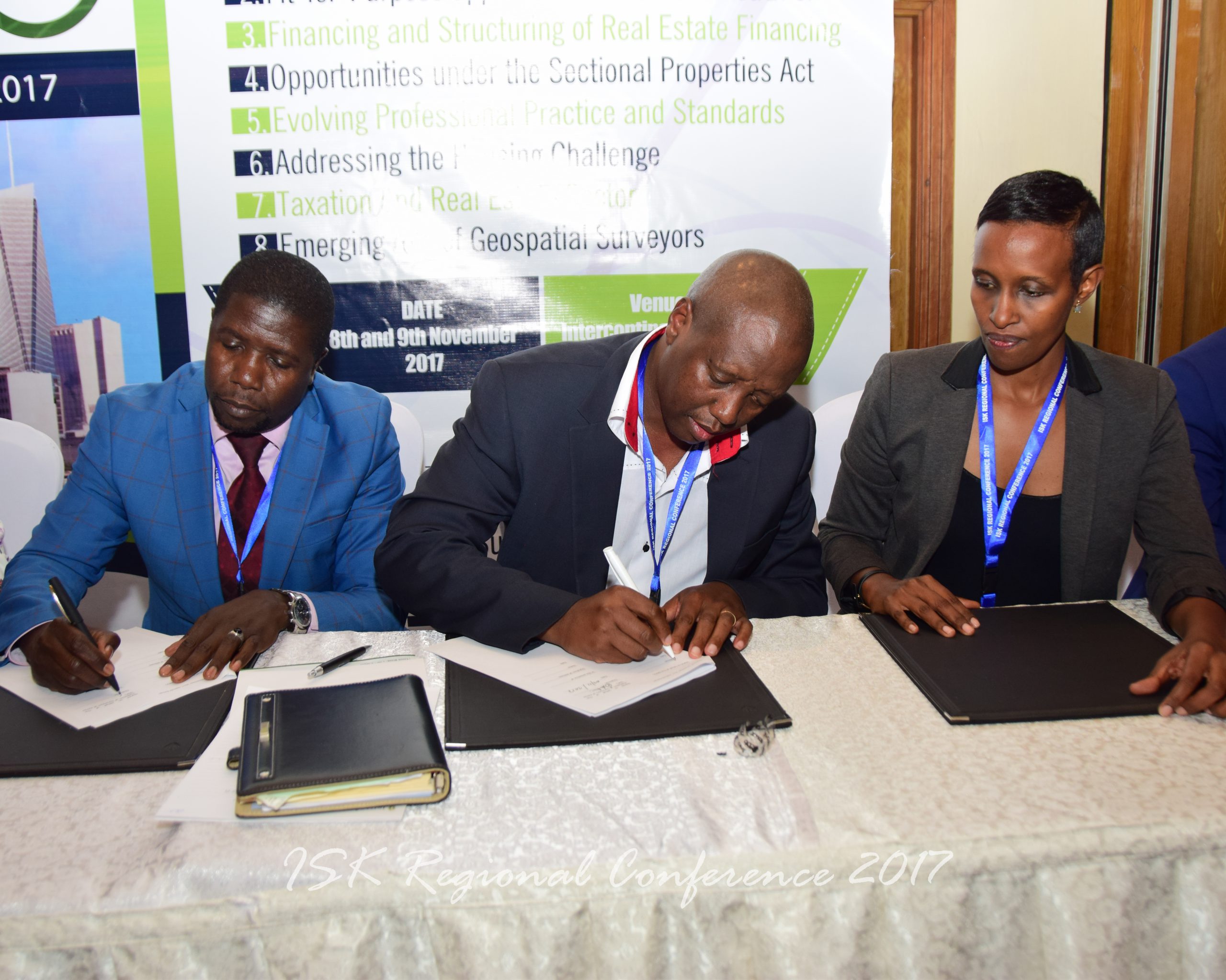 The Institution has signed a Memorandum of understanding with Institute of Real Property Valuers of Rwanda (IRPVR) to enhance further collaboration in furtherance of their mutual interest. ISK Chairman Stephen Ambani with IRPVR Chair Egide GATSIROMBO sign MOU after the Regional Conference Under the agreement, the two bodies shall; Jointly organize seminars, trainings and conference Exchange […]